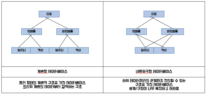 - 계층형 데이터베이스와 네트워크형 데이터베이스