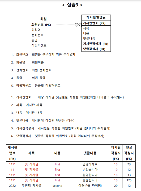 오늘은 8일차 강의 후반부에 진행했던 DA# 실습(1차 정규화 실습)에 대한 정답을 알려주셔서, 8일차 강의 후반부에 진행했던 DA# 실습(1차 정규화 실습)에 대한 정답을 알려주셔서 어제 작성했던 ERD다이어그램과 정답을 비교하고,