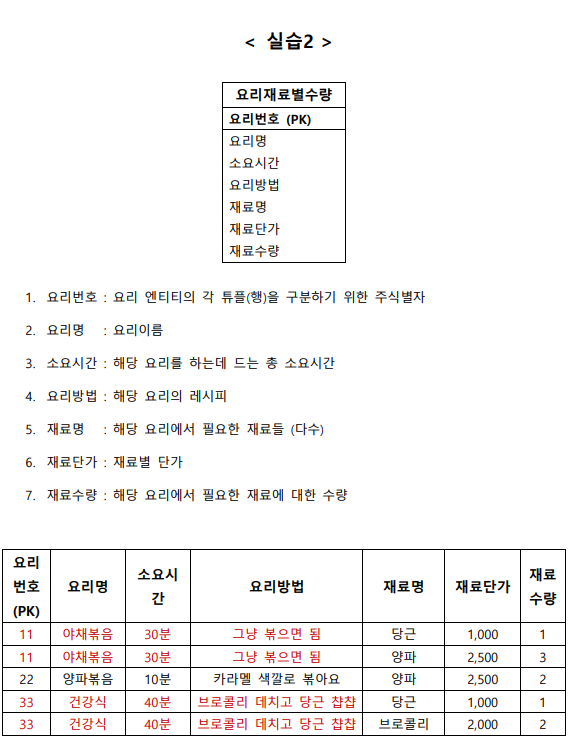 ERD 다이어그램 그리기 (1차 정규화 실습) 오답