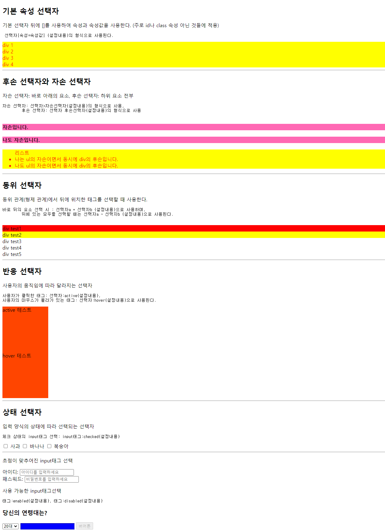 <h2>형태 구조 선택자(태그 별로 구분)</h2>